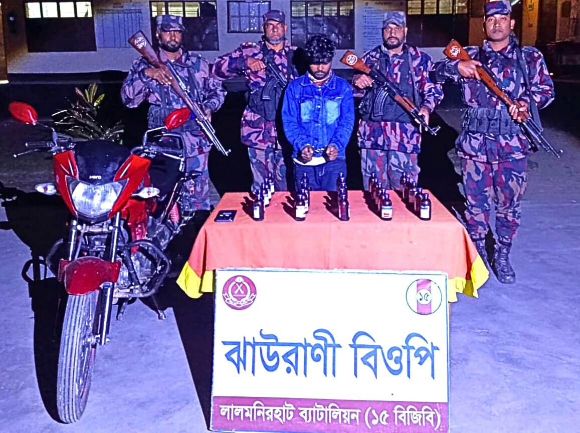 লালমনিরহাট ব্যাটালিয়ন (১৫ বিজিবি) এর দায়িত্বপূর্ণ সীমান্ত এলাকায় চলমান গোয়েন্দা তথ্য ভিত্তিক চোরাচালান ও মাদক বিরোধী অভিযানের অংশ হিসেবে ঝাউরানী ও দিঘলটারী বিওপির ২টি বিশেষ টহলদল অভিযান পরিচালনা করে বিপুল পরিমাণে ভারতীয় ইস্কাপ সিরাপসহ ১জন আসামী আটক করেছে। চোরাচালান প্রতিরোধের মাধ্যমে সীমান্ত নিরাপত্তা ও মাদক বিরোধী অভিযানে বিজিবি’র দৃঢ় অবস্থানের প্রমাণ মিলেছে।