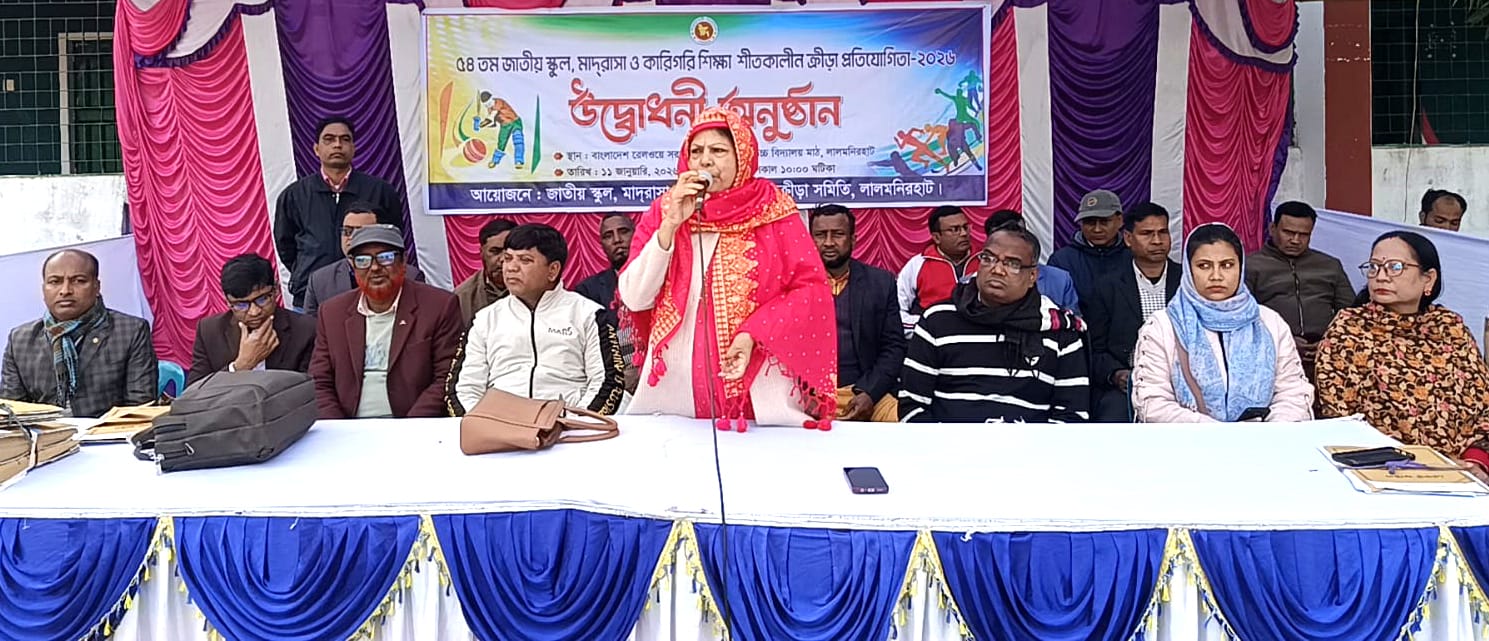 লালমনিরহাটে ৫৪তম জাতীয় স্কুল, মাদ্রাসা ও কারিগরি শিক্ষা শীতকালীন ক্রীড়া প্রতিযোগিতা-২০২৬ উদ্বোধনী অনুষ্ঠান অনুষ্ঠিত হয়েছে।