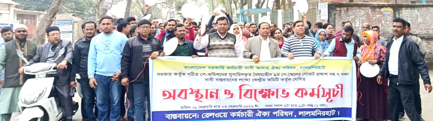 লালমনিরহাটে বাংলাদেশ সরকারি কর্মচারী দাবী আদায় ঐক্য পরিষদ লালমনিরহাট সরকার কর্তৃক গঠিত পে-কমিশনের সুপারিশকৃত বৈষম্যহীন ৯ম পে-স্কেলের গেজেট প্রকাশ সহ ৭ দফা দাবী বাস্তবায়নের লক্ষ্যে কেন্দ্রীয় কমিটি কর্তৃক ঘোষিত অবস্থান ও বিক্ষোভ কর্মসূচী অনুষ্ঠিত হয়েছে।
