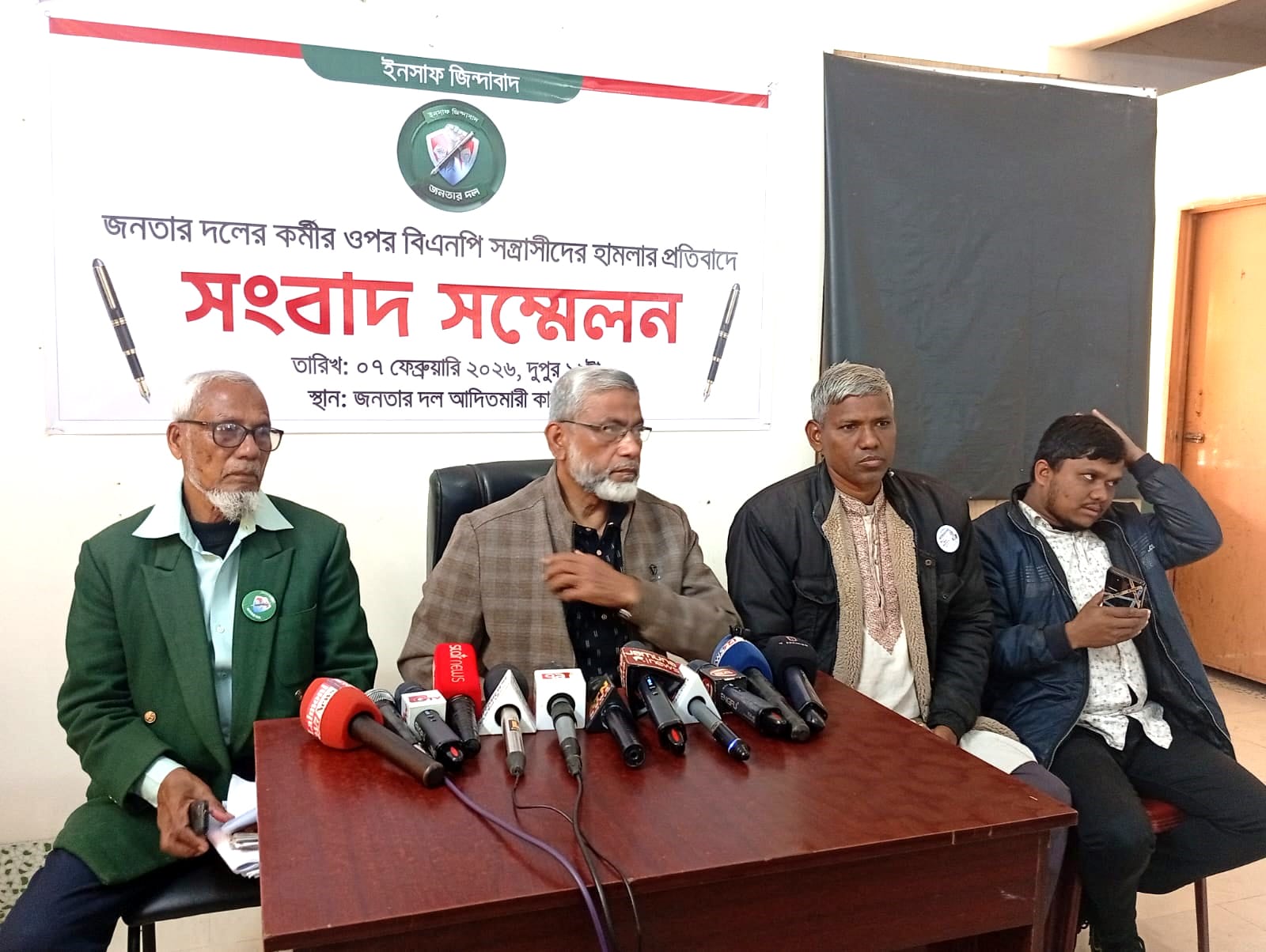 লালমনিরহাটে জনতার দলের কর্মীর ওপর বিএনপি সন্ত্রাসীদের হামলার প্রতিবাদে সংবাদ সম্মেলন অনুষ্ঠিত হয়েছে।