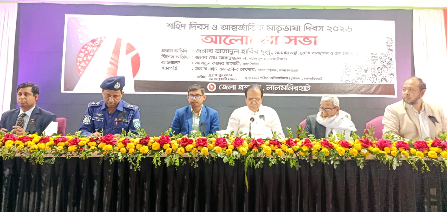শনিবার (২১ ফেব্রুয়ারি) সকাল ১১টায় লালমনিরহাট জেলা পরিষদ অডিটরিয়ামে লালমনিরহাট জেলা প্রশাসনের আয়োজনে এ আলোচনা সভা অনুষ্ঠিত হয়।