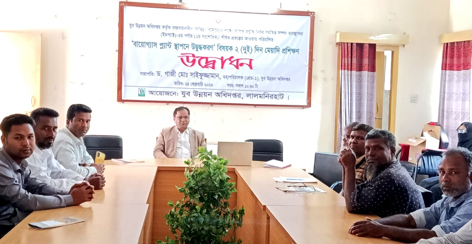 লালমনিরহাটে যুব উন্নয়ন অধিদপ্তর কর্তৃক বাস্তবায়নাধীন 'দারিদ্র্য বিমোচনের লক্ষ্যে ব্যাপক প্রযুক্তি নির্ভর সমন্বিত সম্পদ ব্যবস্থাপনা (ইমপ্যাক্ট)-৩য় পর্যায় (২য় সংশোধিত)' শীর্ষক প্রকল্পের আওতায় পরিচালিত 'বায়োগ্যাস প্ল্যান্ট স্থাপনে উদ্বুদ্ধকরণ' বিষয়ক ২ (দুই) দিন মেয়াদি প্রশিক্ষণ উদ্বোধন অনুষ্ঠান অনুষ্ঠিত হয়েছে।
