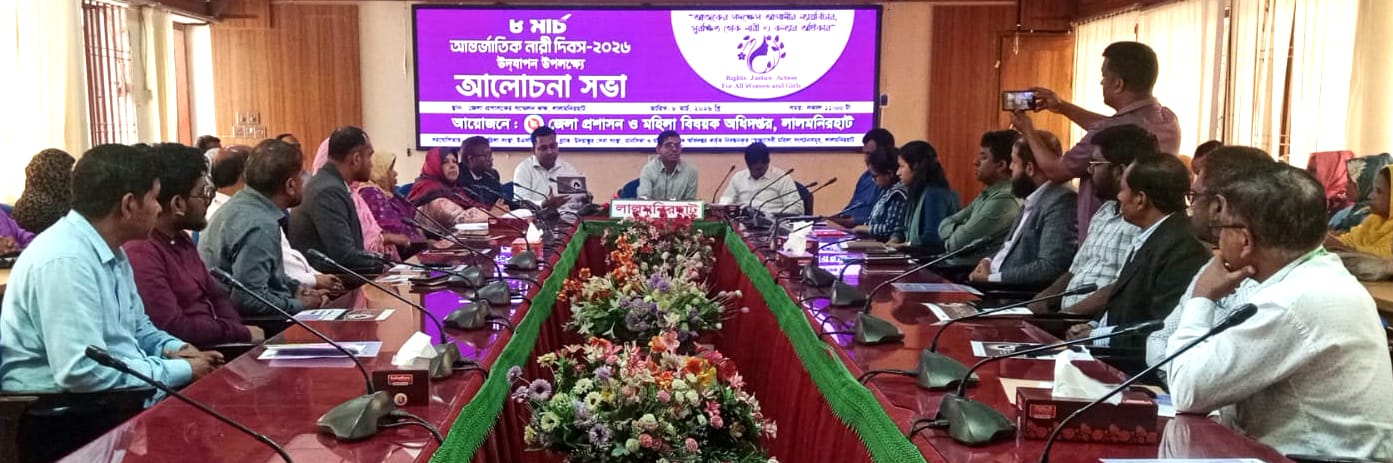 লালমনিরহাটে 'আজকের পদক্ষেপ, আগামীর ন্যায়বিচার, সুরক্ষিত হোক নারী ও কন্যার অধিকার’ এই স্লোগানকে সামনে রেখে আন্তর্জাতিক নারী দিবস ২০২৬ উদযাপন উপলক্ষে আলোচনা সভা হয়েছে।