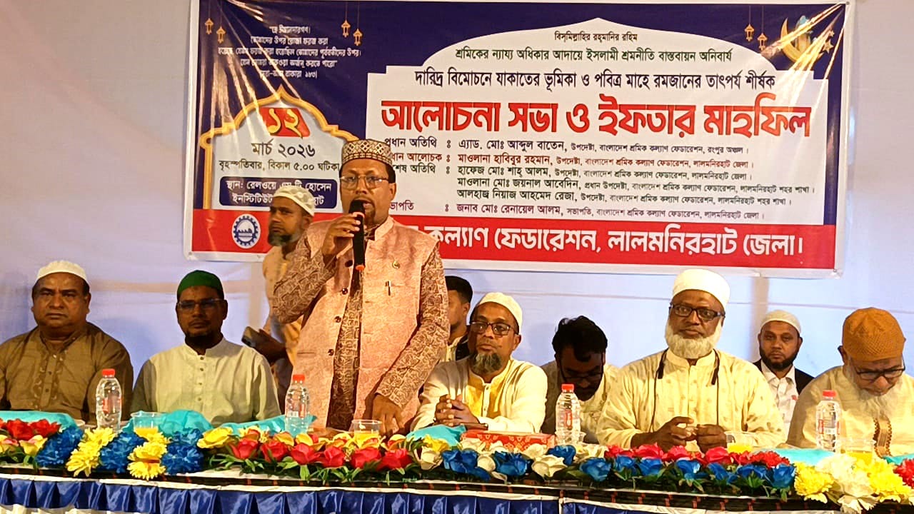 লালমনিরহাটে শ্রমিকের ন্যায্য অধিকার আদায়ে ইসলামী শ্রমনীতি বাস্তবায়ন অনিবার্য দারিদ্র বিমোচনে যাকাতের ভূমিকা ও পবিত্র মাহে রমজানের তাৎপর্য শীর্ষক আলোচনা সভা ও ইফতার মাহফিল অনুষ্ঠিত হয়েছে।