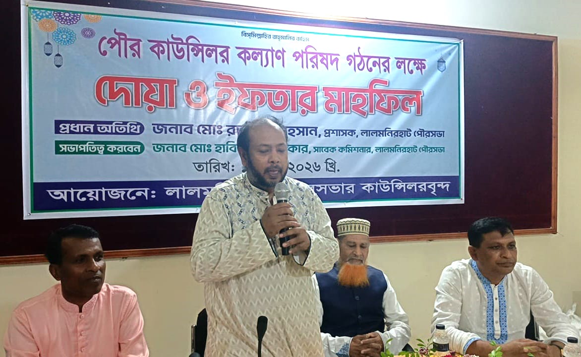 মঙ্গলবার (১৭ মার্চ) বিকেলে লালমনিরহাট পৌরসভা হলরুমে লালমনিরহাট পৌরসভার কাউন্সিলরবৃন্দের আয়োজনে পৌর কাউন্সিলর কল্যানন পরিষদ গঠনের লক্ষে দোয়া ও ইফতার মাহফিল শেষে এ নতুন কমিটি ঘোষণা করা হয়।