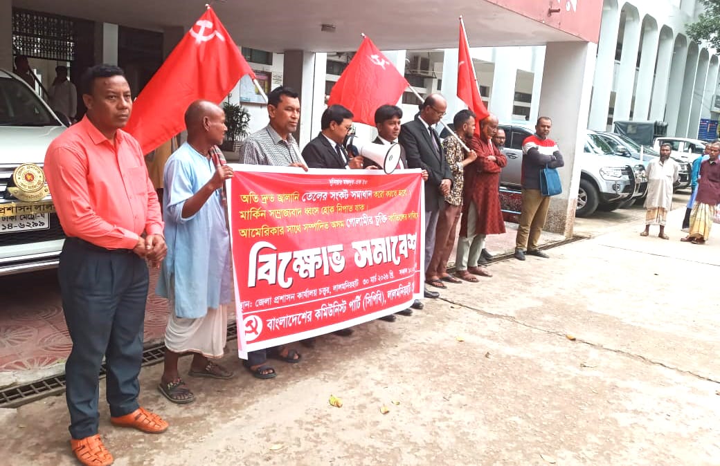 লালমনিরহাটে "দুনিয়ার মজদুর এক হও" স্লোগান নিয়ে অতি দ্রুত জ্বালানি তেলের সংকট সমাধান করো করতে হবে, মার্কন সাম্রাজবাদ ধ্বংস হোক নিপাত যাক, আমেরিকার সাথে সম্পাদিত অসম গোলামীর চুক্তি বাতিলের দাবিতে বিক্ষোভ সমাবেশ অনুষ্ঠিত হয়েছে।