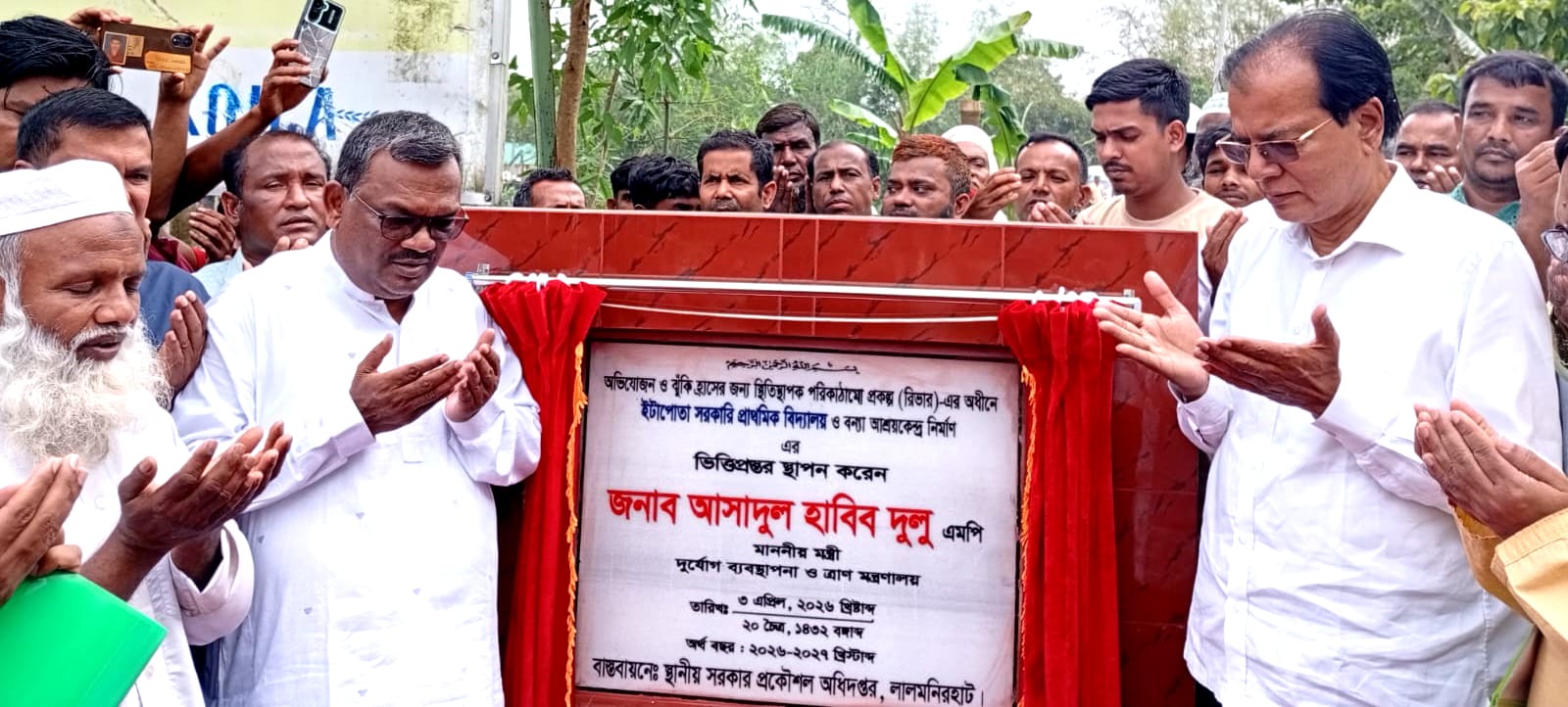 শুক্রবার (৩ এপ্রিল) সকাল ১১টায় লালমনিরহাট সদর উপজেলার ১নং মোগলহাট ইউনিয়নে লালমনিরহাট স্থানীয় সরকার প্রকৌশল অধিদপ্তরের বাস্তবায়নে অভিযোজন ও ঝুঁকি হ্রাসের জন্য স্থিতিস্থাপক পরিকাঠামো প্রকল্প (রিভার)-এঁর অধীনে ইটাপোতা সরকারি প্রাথমিক বিদ্যালয় ও বন্যা আশ্রয়কেন্দ্র নির্মাণ কাজ এর ভিত্তিপ্রস্তর স্থাপন ও শুভ উদ্বোধনকালে দুর্যোগ ব্যবস্থাপনা ও ত্রাণ মন্ত্রণালয়ের মন্ত্রী অধ্যক্ষ আসাদুল হাবিব দুলু এসব কথা বলেন।