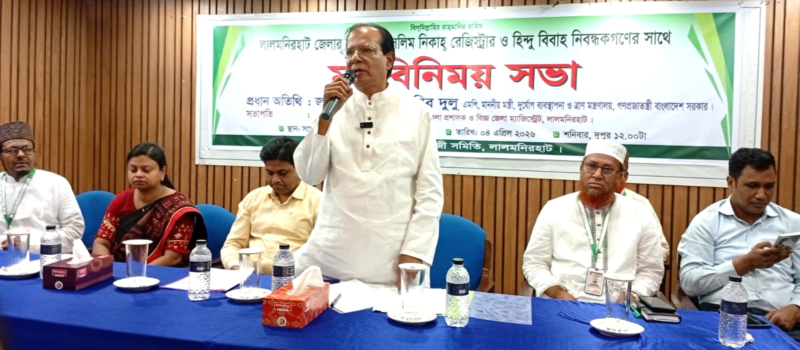 শনিবার (৪ এপ্রিল) দুপুর ১২টায় লালমনিরহাট সার্কিট হাউজ সম্মেলন কক্ষে লালমনিরহাট জেলা কাজী সমিতির ব্যবস্থাপনায় লালমনিরহাট জেলার নিবন্ধিত মুসলিম নিকাহ্ রেজিস্ট্রার ও হিন্দু বিবাহ নিবন্ধকগণের সাথে মতবিনিময় সভায় তিনি এসব কথা বলেন।