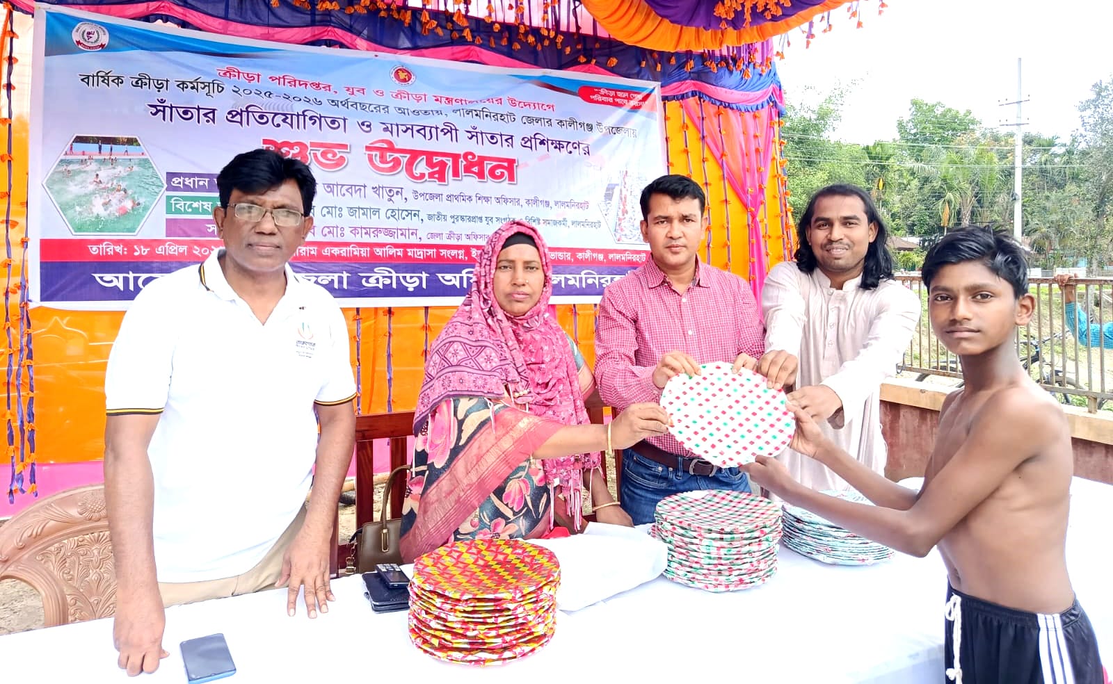 লালমনিরহাট জেলা ক্রীড়া অফিসার মোঃ কামরুজ্জামান-এঁর সভাপতিত্বে প্রধান অতিথি ছিলেন কালীগঞ্জ উপজেলা প্রাথমিক শিক্ষা অফিসার আবেদা খাতুন। এতে বিশেষ অতিথি ছিলেন জাতীয় পুরস্কারপ্রাপ্ত যুব সংগঠক ও বিশিষ্ট সমাজকর্মী মোঃ জামাল হোসেন। এ সময় লালমনিরহাট জেলা ফুটবল কোচ আবুল কালাম আজাদ বকুল, কালীগঞ্জের বিশিষ্ট ব্যবসায়ী ও সাবেক ফুটবল খেলোয়াড় আবু বক্কর সিদ্দিক শিলুসহ সাঁতার প্রশিক্ষক ও সাঁতার প্রতিযোগী এবং প্রশিক্ষণার্থীগণ উপস্থিত ছিলেন।