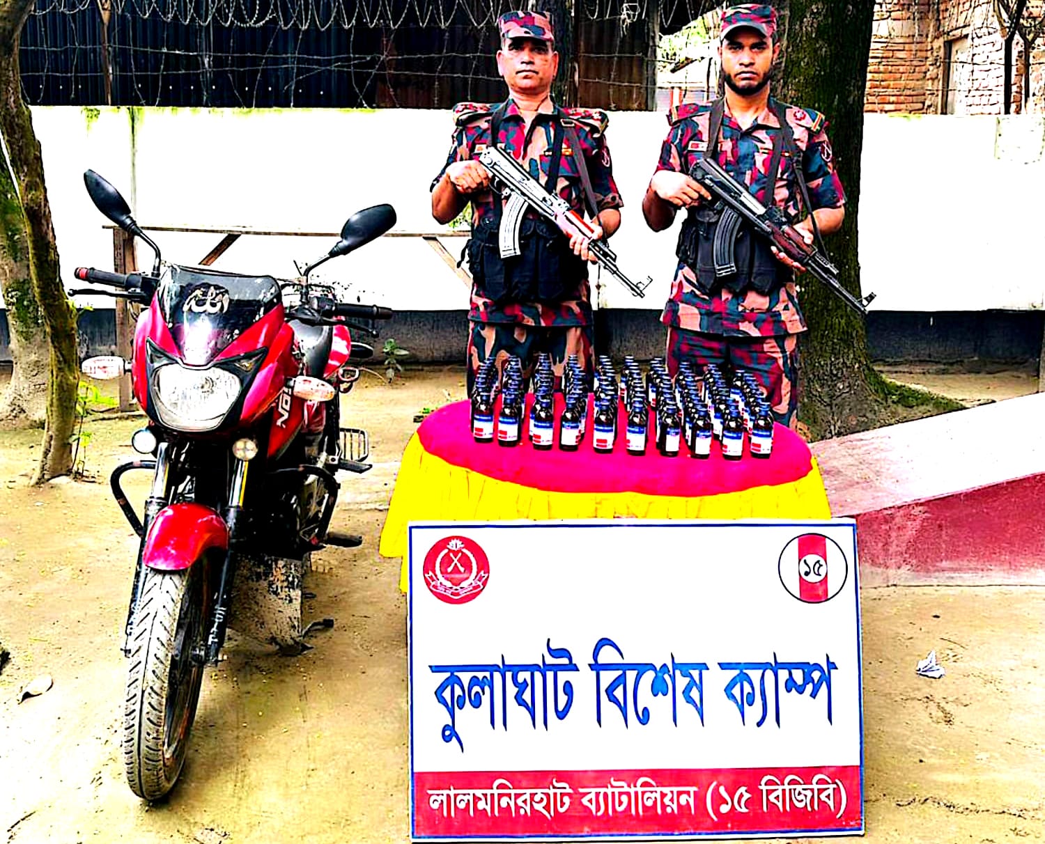 লালমনিরহাট ব্যাটালিয়ন (১৫ বিজিবি) এর দায়িত্বপূর্ণ সীমান্ত এলাকায় চলমান গোয়েন্দা তথ্য ভিত্তিক মাদক বিরোধী অভিযানের অংশ হিসেবে কুলাঘাট বিশেষ ক্যাম্প অভিযান পরিচালনা করে মোটর সাইকেলসহ ভারতীয় ইস্কাফ সিরাপ জব্দ করেছে।