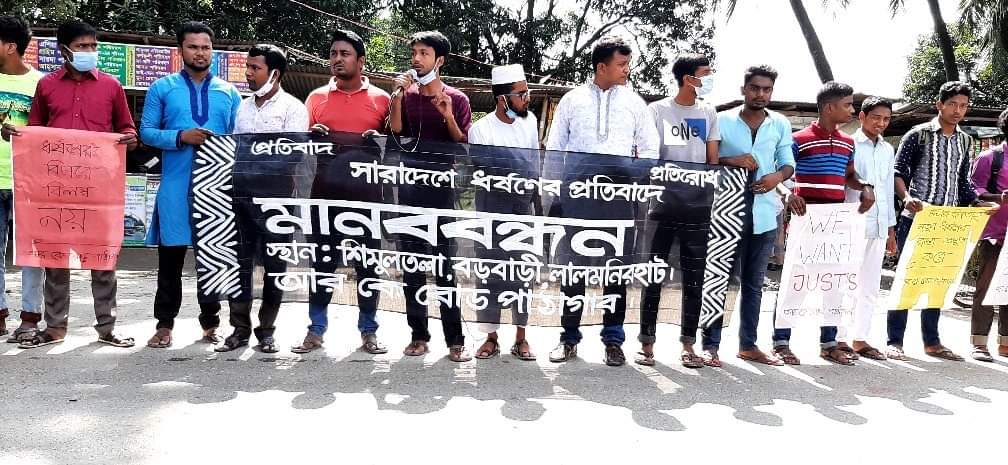আলোর মনি ডটকম ডেস্ক রিপোর্ট: বুধবার (৮ অক্টোবর) সকাল সাড়ে ১০টায় লালমনিরহাট সদর উপজেলার বড়বাড়ীর ইউনিয়নের শিমুলতলায় রংপুর-কুড়িগ্রাম মহাসড়কে আর কে রোড পাঠাগারের আয়োজনে সারাদেশে ধর্ষণের প্রতিবাদে মানববন্ধন অনুষ্ঠিত হয়।