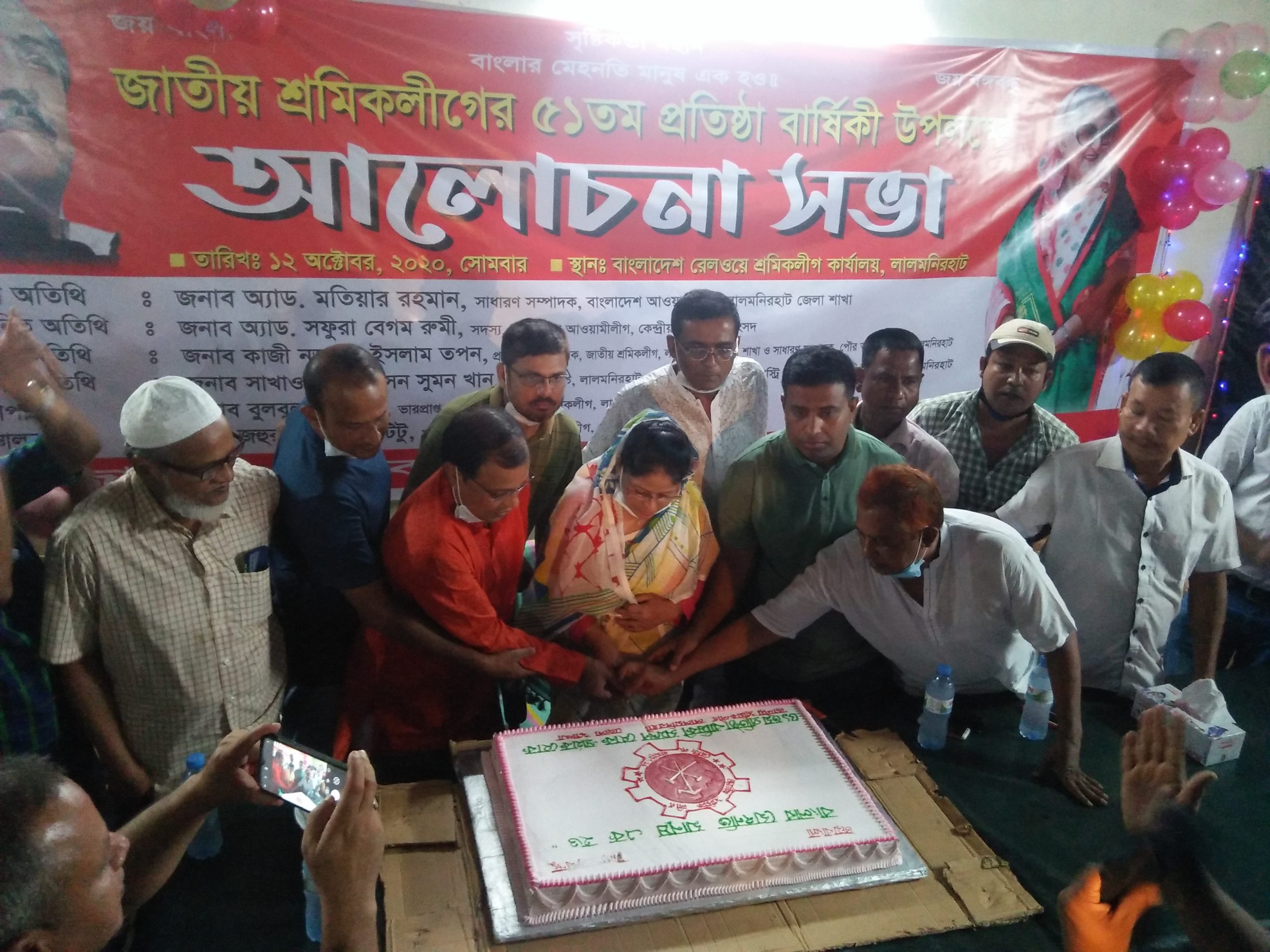 আলোর মনি ডটকম ডেস্ক রিপোর্ট: আজ সোমবার (১২ অক্টোবর) রাত ৮টায় বাংলাদেশ রেলওয়ে শ্রমিক লীগ লালমনিরহাট কার্যালয়ে জাতীয় শ্রমিক লীগ লালমনিরহাট জেলা শাখার আয়োজনে জাতীয় শ্রমিক লীগের ৫১তম প্রতিষ্ঠা বার্ষিকী উপলক্ষে কেককাটা ও আলোচনা সভা অনুষ্ঠিত হয়।