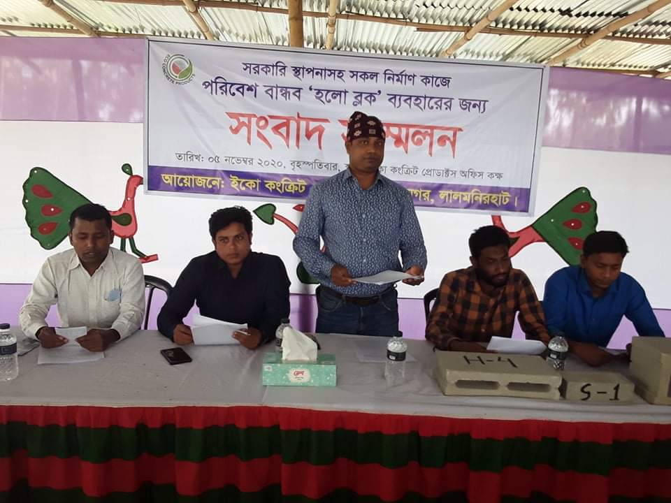 আলোর মনি ডটকম ডেস্ক রিপোর্ট: আজ বৃহস্পতিবার (৫ নভেম্বর) সকাল ১১টায় লালমনিরহাট জেলার লালমনিরহাট সদর উপজেলার হারাটি ইউনিয়নের কাজীর চওড়া গ্রামস্থ ইকো কংক্রিট প্রোডাক্টস অফিস কক্ষে ইকো কংক্রিট প্রোডাক্টসের আয়োজনে সরকারি স্থাপনাসহ সকল নির্মাণ কাজে পরিবেশ বান্ধব 'হলো ব্লক' ব্যবহারের জন্য সংবাদ সম্মেলন অনুষ্ঠিত হয়।