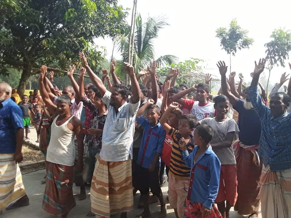 বৃহস্পতিবার সরেজমিনে ওই এলাকায় গেলে এলাকাবাসী ছেকনাপাড়া গ্রামের অাজহার অালীর ছেলে নুরুল হক, চোংগাদ্বারা গ্রামের হামেজ উদ্দিনের ছেলে মহুবার রহমান, মৃত্যু হামেজের ছেলে মজর অালী, হাফেজ উদ্দিনের ছেলে রাশেদুল, খামারপাড়া গ্রামের করিম উদ্দিনের ছেলে তমিজ উদ্দিন, ছাবেদ অালীর ছেলে শফিকুল, ছেকনাপাড়া গ্রামের শাহানত উল্লাহর ছেলে অাব্দুর রাজ্জাকসহ ৩শতাধিক গ্রামবাসী সঠিক বিচারের দাবিতে বিক্ষোভ মিছিল করে।
