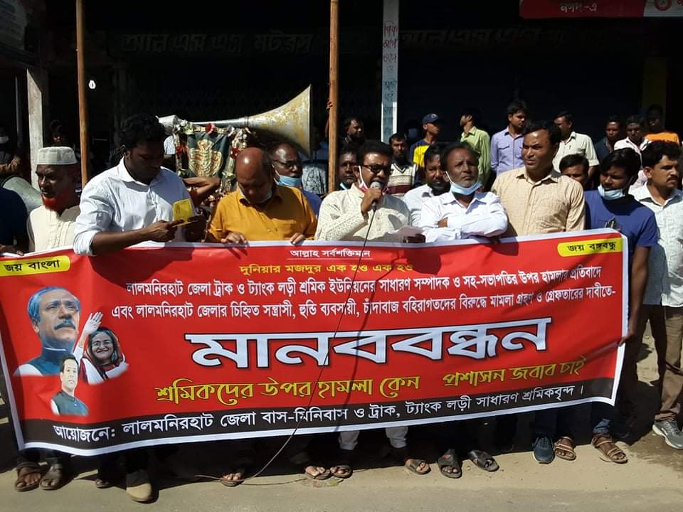 সভাপতিত্ব করেন লালমনিরহাট জেলা বাস মিনিবাস শ্রমিক ইউনিয়নের সাবেক কোষাধ্যক্ষ আনোয়ারুল হক দুলু। বক্তব্য রাখেন লালমনিরহাট জেলা বাস মিনি বাস শ্রমিক ইউনিয়নের সদস্য রবিন হোসেন বাপ্পি, লালমনিরহাট জেলা বাস মিনিবাস শ্রমিক ইউনিয়নের সাবেক সাংগঠনিক সম্পাদক জাকির হোসেন লাভলু, ট্রাক শ্রমিক নেতা মুন্না, ট্রাক ট্যাংকলড়ী শ্রমিক ইউনিয়নের ভারপ্রাপ্ত সভাপতি আঃ মালেক রতন, জাতীয় মটর শ্রমিক পার্টির সাধারণ আছির উদ্দিন, জেলা ট্রাক ট্যাংকলড়ী ও কাভার্ড ভ্যান শ্রমিক ইউনিয়নের সাধারণ সম্পাদক আবুল কালাম আজাদ প্রমুখ। এ সময় লালমনিরহাট জেলা বাস-মিনিবাস ও ট্রাক, ট্যাংক লড়ী সাধারণ শ্রমিকবৃন্দ উপস্থিত ছিলেন।