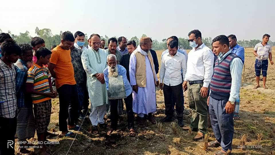 সেই কাজের শুভ সূচনা করেন লালমনিরহাট সদর উপজেলা পরিষদের চেয়ারম্যান কামরুজ্জামান সুজন, লালমনিরহাট সদর উপজেলা নির্বাহী অফিসার উত্তম কুমার রায়, জমির পূর্বের মালিক আইমন বেওয়ার নাতী পল্লী প্রাণী চিকিৎসক আনোয়ার হোসেন, সাপ্তাহিক আলোর মনি পত্রিকার নির্বাহী সম্পাদক হেলাল হোসেন কবির। এ সময় লালমনিরহাট সদর উপজেলা পিআইও মশিউর রহমান, লালমনিরহাট সদর উপজেলা এলজিইডির প্রকৌশলী শাহ মোঃ ওবাইদুর রহমান, মহেন্দ্রনগর ইউনিয়ন পরিষদের চেয়ারম্যান মশিউর রহমান বসুনিয়া স্বপন, ইউপি সদস্য আব্দুর রহমান, কিসামত ঢঢ গাছ দ্রাখিল মাদ্রাসার সহকারি শিক্ষক খলিলুর রহমানসহ অন্যান্য ব্যক্তিবর্গ উপস্থিত ছিলেন।