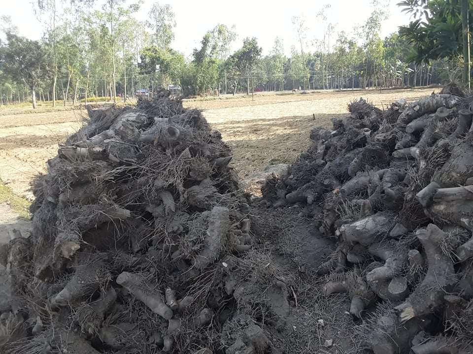 সবগুলো ভাটায় ইট পোড়াতে জ্বালানি বাঁশের মুড়া ও কাঠ ব্যবহার করা হচ্ছে। ভাটায় স্তুপ করে রাখা হয়েছে বাঁশের মুড়া ও কাঠ।