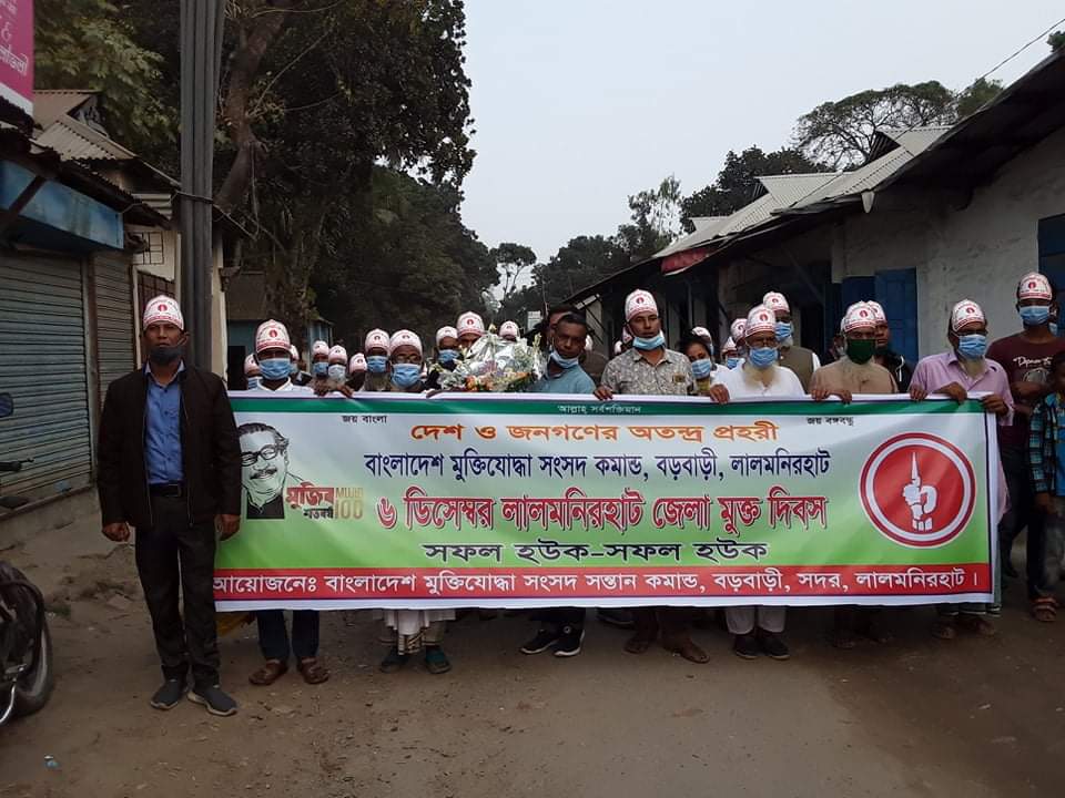 আলোর মনি ডটকম ডেস্ক রিপোর্ট: আজ রোববার (৬ ডিসেম্বর) বিকাল ৩টা ১মিনিটে লালমনিরহাট জেলার লালমনিরহাট সদর উপজেলার বড়বাড়ী ইউনিয়ন পরিষদ চত্ত্বরে মুক্তিযোদ্ধা সংসদ সন্তান কমান্ড বড়বাড়ী ইউনিয়ন কমান্ডের সার্বিক সহযোগিতায় বাংলাদেশ মুক্তিযোদ্ধা সংসদ বড়বাড়ী ইউনিয়ন কমান্ডের আয়োজনে ৬ ডিসেম্বর লালমনিরহাট মুক্ত দিবস উপলক্ষে- বর্ণাঢ্য শোভাযাত্রা ও আলোচনা সভা অনুষ্ঠিত হয়।