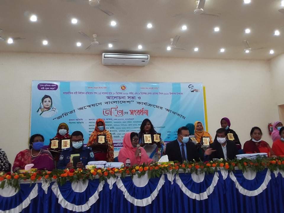 আলোর মনি ডটকম ডেস্ক রিপোর্ট: আজ বুধবার (৯ ডিসেম্বর) সকাল ১১টায় লালমনিরহাট জেলা পরিষদ মিলনায়তন (নতুন) এ লালমনিরহাট জেলা প্রশাসন ও মহিলা বিষয়ক অধিদপ্তরের আয়োজনে আন্তর্জাতিক নারী নির্যাতন প্রতিরোধ পক্ষ (২৫ নভেম্বর হতে ১০ ডিসেম্বর ২০২০ পর্যন্ত) এবং ৯ ডিসেম্বর বেগম রোকেয়া দিবস-২০২০ উদযাপন উপলক্ষে আলোচনা সভা ও "জয়িতা অন্বেষণে বাংলাদেশ" কার্যক্রমের আওতায় জয়িতাদের সংবর্ধনা অনুষ্ঠিত হয়।