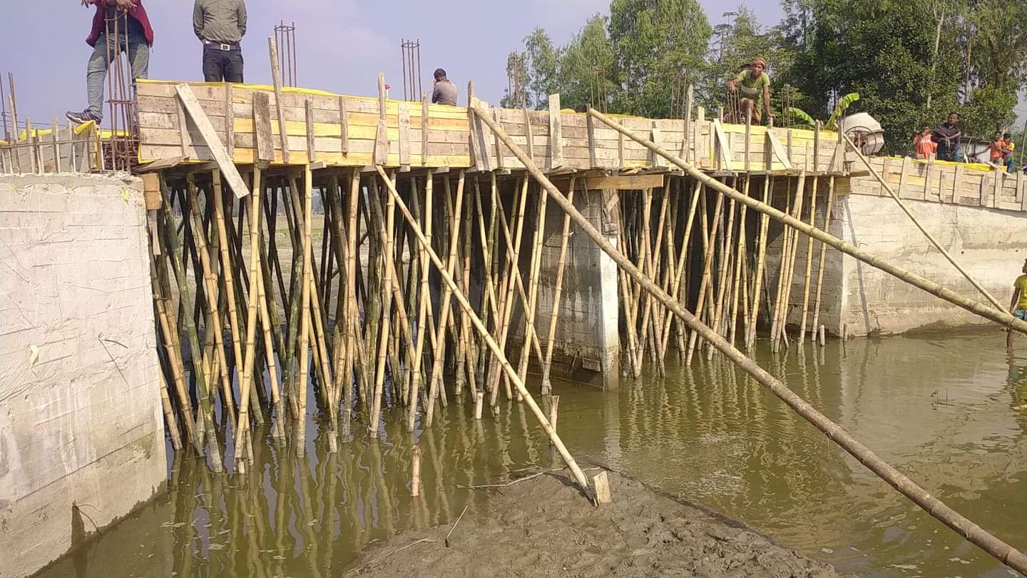 ব্রীজের নির্মাণে প্রকৃত ঠিকাদার লালমনিরহাটের আব্দুল হাকিম হলেও তা ৮লক্ষ টাকায় কিনে নিয়ে কাজ করছে সিন্দুর্না ইউনিয়নের সেলিম হোসেন নামে এক যুবক।