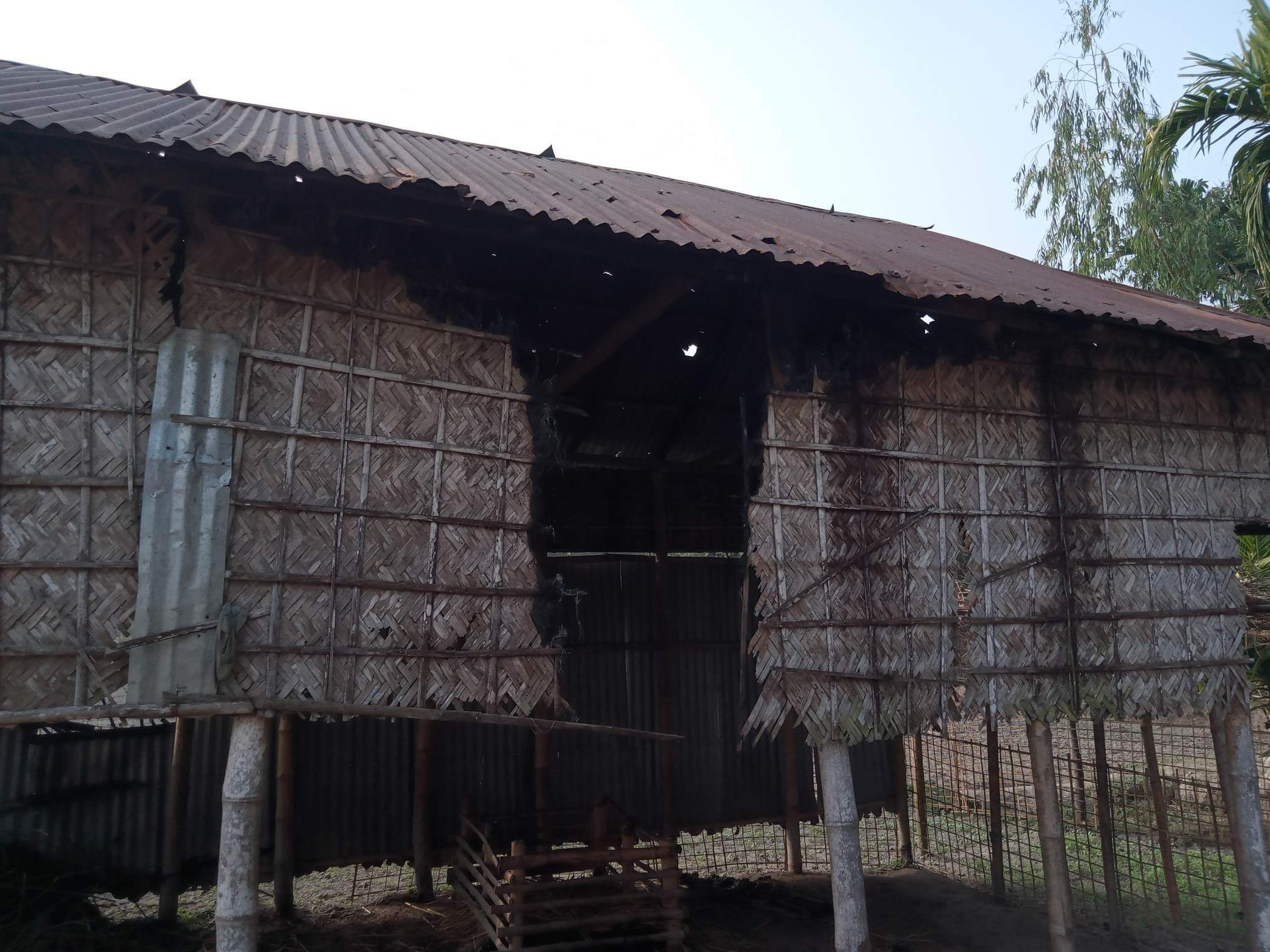 এক পর্যায়ে নজরুলের স্ত্রী আনজু বেগম (৪০) হামলাকারীদের বাধা দিতে গেলে সেলিম ও শাহানুর তাকে বেধরক মারপিট করে। ঐ সময় অভিযোগে উল্লেখিত ৫নং বিবাদী সিরাজুল গৃহবধূ আনজু বেগমের পড়নের কাপড় টানাহেচড়া করে বিবস্ত্র করে শ্লীলতাহানি ঘটায়। শাহানুর তার বাম হাতে থাকা ছোরা দিয়ে আনজুর মাথা বরাবর চোট মারে তখন আনজু তার বাম হাত দিয়ে আঘাত ঠেকাতে গেলে ছোড়ার আঘাতে মাথার বাম পাশসহ বাম হাতে গুরুতর রক্তাক্ত জখম হয়। পরে আকবর আলী (৫৫) আনজুর গলা চিপে ধরে স্বাসরুদ্ধ করার চেষ্টা করে ওই সময় নজরুল চিৎকার চেচামেচি শুনে বাড়িতে ডুকে সন্ত্রাসিদের হাত থেকে স্ত্রীকে রক্ষা করার চেষ্টা করলে অভিযুক্ত শাহাজাহান ও রফিকুল, নজরুল কে মারফিট করতে থাকে। তখন আব্দুর রাজ্জাকের হাতে থাকা কেরোসিন তেল ভর্তি বোতল নিয়ে নজরুলের পুর্বদুয়ারি প্রায় ১৭-১৮ হাত টিনের ঘরের পূর্বপাশের বাশের বেড়ায় তেল ঢেলে দিয়ে তার পকেটে থাকা গ্যাসলাইট দিয়ে আগুন লাগিয়ে দেয়। আগুন দাউ দাউ করে জ্বলে উঠলে নজরুল ও তার স্ত্রীর ডাক চিৎকার করতে থাকলে ওই সন্ত্রাসীরা তাদের প্রাণে মেরে ফেলার হুমকি দিয়ে ঘটনাস্থল ত্যাগ করে। পরে ওই দম্পতির আত্মচিৎকারে আশপাশের লোক জন ঘড়ের আগুন নেভাতে থাতে। এরপর ফায়ার সার্ভিসের গাড়ি এসে অবশিষ্ট আগুন নেভাতে সক্ষম হয়।