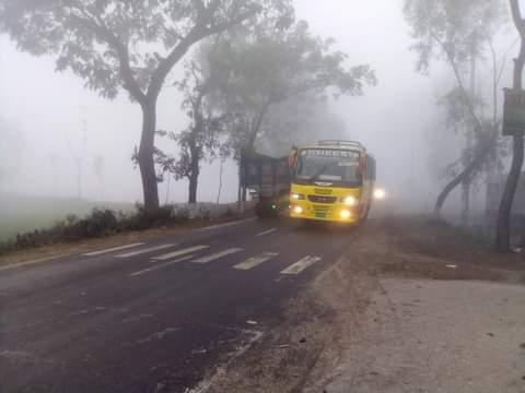 এদিকে ঘন কুয়াশার কারণে দিনের বেলাতেও হেড লাইট জ্বালিয়ে যানবাহন চলাচল করছে।