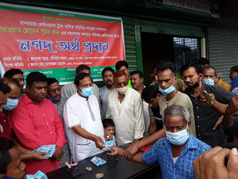 উল্লেখ্য যে, লালমনিরহাটের অসহায় পরিবহন ৩শতজন শ্রমিকদের জন্য ৫শত (নগদ) করে ১লক্ষ ৫০হাজার টাকা বিতরণ করা হয়।