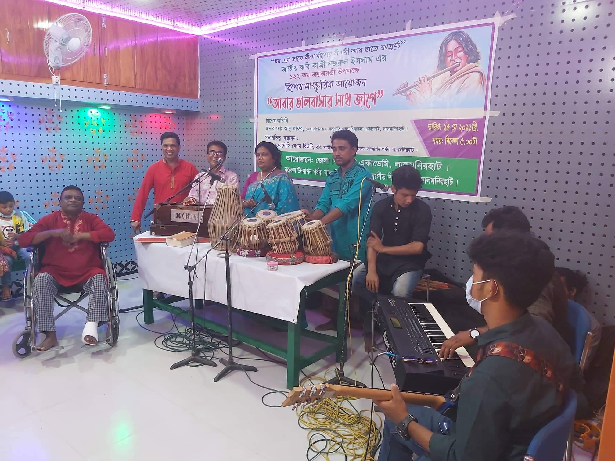 আলোর মনি রিপোর্ট: মঙ্গলবার (২৫ মে) বিকাল ৫টায় লালমনিরহাট জেলা শহরের স্টেশন রোডস্থ কিন্ডার হিল্পস ওয়ার্ক কার্যালয়ে লালমনিরহাট জেলা শিল্পকলা একাডেমি, লালমনিরহাট নজরুল উদযাপন পরিষদ, লালমনিরহাট নজরুল সংগীত শিল্পী পর্ষদের আয়োজনে জাতীয় কবি কাজী নজরুল ইসলাম এর ১২২তম জন্মজয়ন্তী উপলক্ষে বিশেষ সাংস্কৃতিক আয়োজন "আবার ভালবাসার সাধ জাগে" অনুষ্ঠিত হয়।