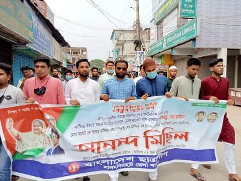আলোর মনি রিপোর্ট: শুক্রবার (৪ জুন) দুপুর ২টা ৩০মিনিটে জেলা ছাত্রলীগ কার্যালয় হইতে স্বর্ণকার পট্টি পর্যন্ত বাংলাদেশ ছাত্রলীগ লালমনিরহাট জেলা শাখার উদ্যোগে করোনাকালীন সময়ে বাংলাদেশের অর্থনৈতিক বিপুল ক্ষতি কাঠিয়ে উঠতে মহান জাতীয় সংসদে মেগা বাজেট পেশ করেছেন দেশরত্ন শেখ হাসিনা, মেগা বাজেটকে স্বাগত জানিয়ে এবং দেশরত্ন শেখ হাসিনা-কে শুভেচ্ছা জানিয়ে লালমনিরহাট জেলা ছাত্রলীগের আনন্দ মিছিল অনুষ্ঠিত হয়।