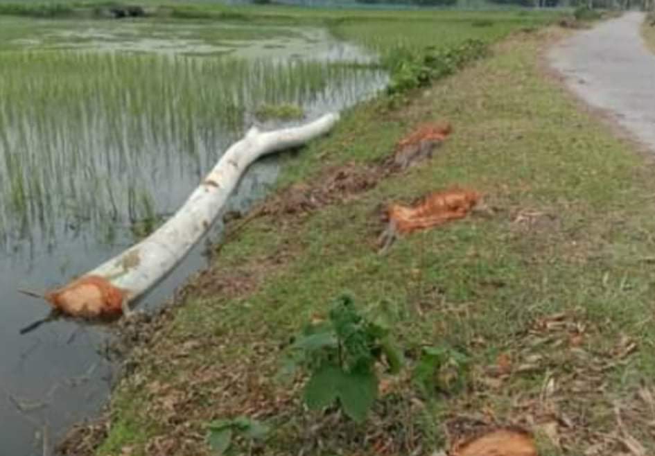 অভিযোগকারী আব্দুর রহমান জানান, কিছু সংখ্যক লোক গত কয়েকদিন ধরে অবৈধভাবে গাছগুলি কেটে সাবাড় করে ফেলেছে। এ বিষয়ে থানায় অভিযোগ করতে গেলে বড়খাতা ইউপি চেয়ারম্যান আবু হেনা মোস্তফা জামাল (সোহেল) মুটোফোনে হুমকি দেয়। গাছ কাটার বিষয় আমি যেন মাথা না ঘামাই সে বিষয়ে বিরত থাকতে বলেন।