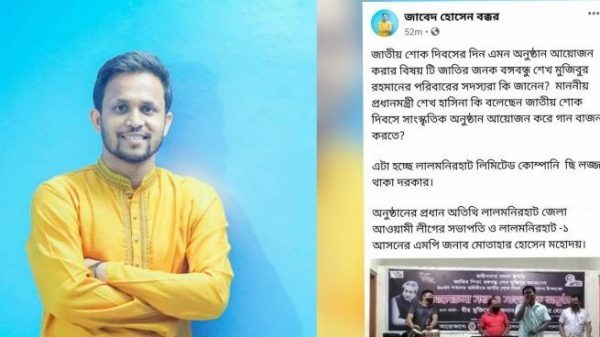 শোক দিবসে সাংস্কৃতিক অনুষ্ঠান নিয়ে স্ট্যাটাস! ভাইস চেয়ারম্যানের বিরুদ্ধে অভিযোগ
