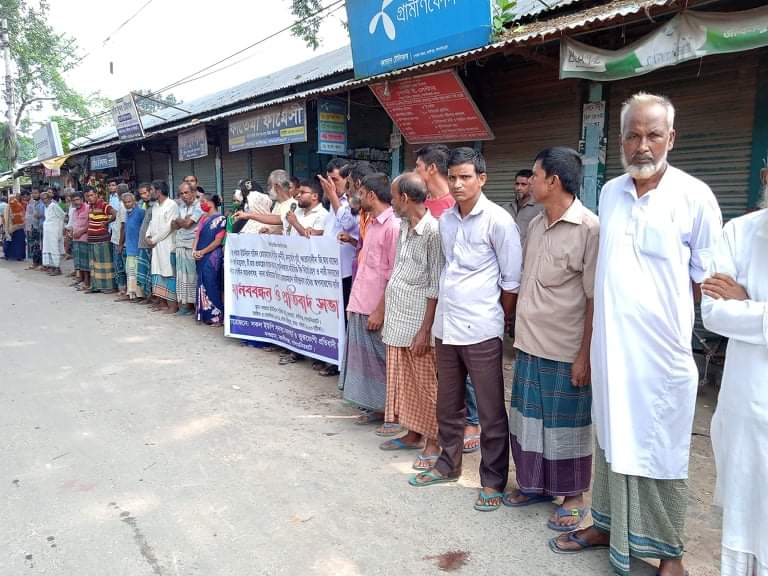 রবিবার (৫ সেপ্টম্বর) সকালে ইউনিয়ন পরিষদের সামনে এ মানববন্ধন অনুষ্ঠিত হয়। এতে অনাস্থা প্রস্তাবকারী ইউপি সদস্যদের পাশাপাশি ইউনিয়নের বিভিন্ন ওয়ার্ড থেকে আসা প্রায় ৫শতাধিক মানুষ ঘন্টাব্যাপী এ মানববন্ধন কর্মসূচী পালন করেন। এ সময় বক্তব্য রাখেন ইউপি সদস্য মোফাজ্জল, ফারুক, ওসমান, এনছানা বেগমসহ সকল ইউপি সদস্যগণ।
