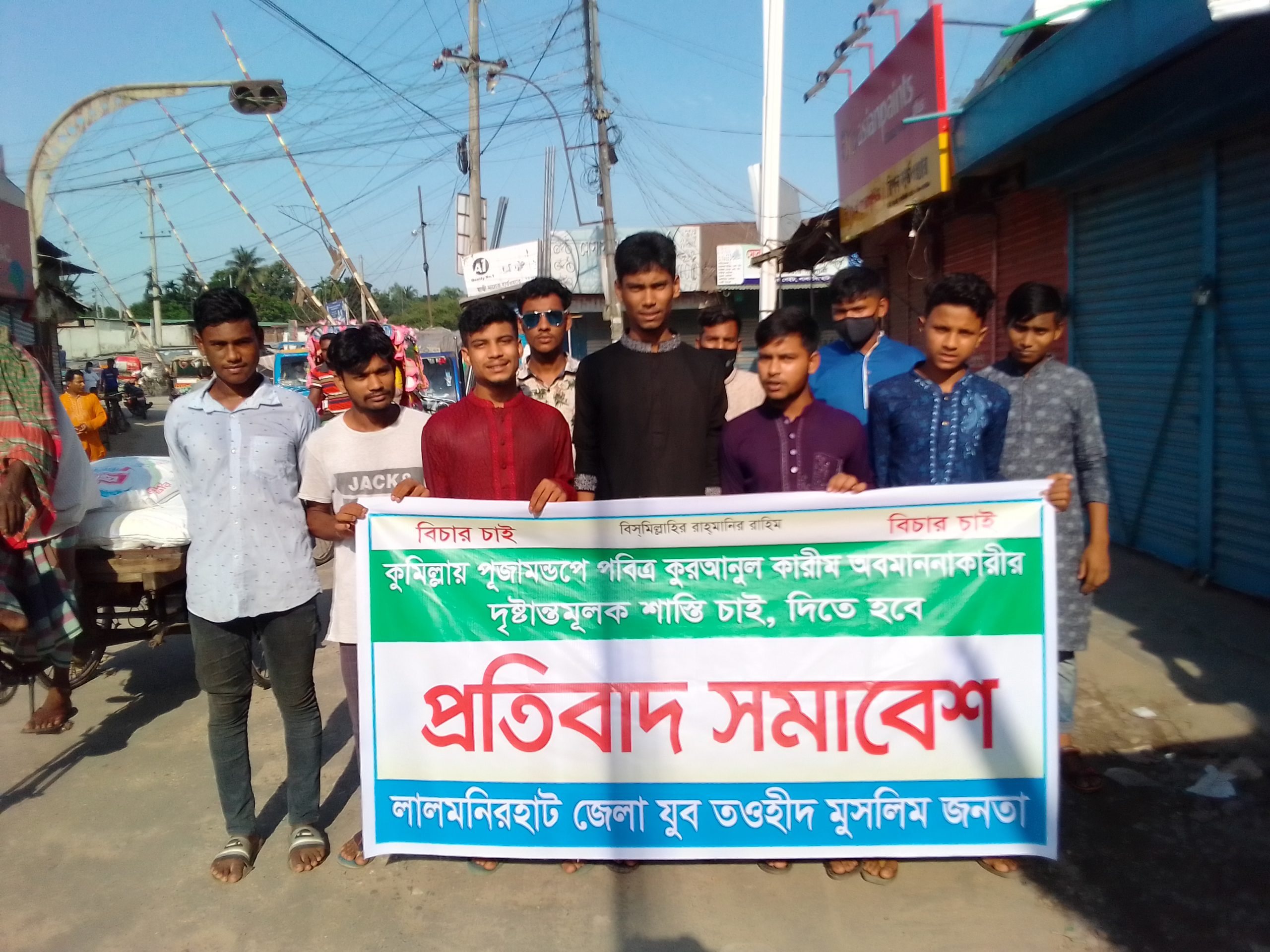 লালমনিরহাটে পবিত্র কুরআনুল কারীম অবমাননাকারীর দৃষ্টান্তমূলক শাস্তির দাবিতে প্রতিবাদ সমাবেশ