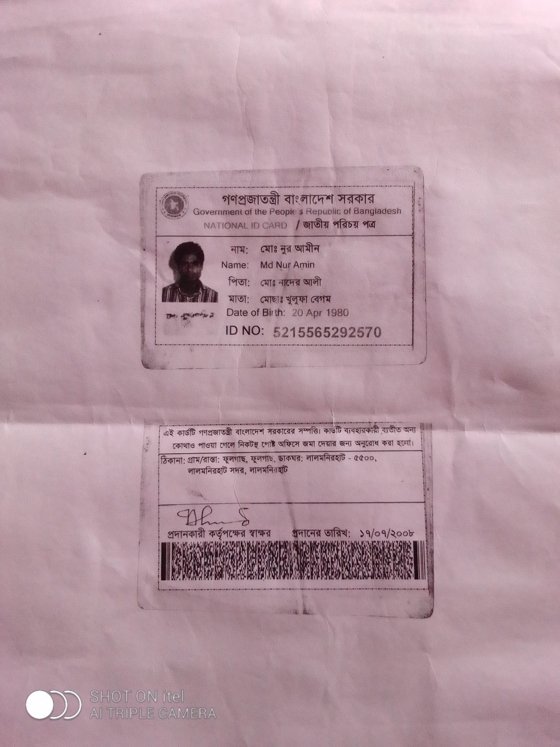 আলোর মনি রিপোর্ট: মোঃ নুর আমীন (৪২) পেশায় একজন ভ্যানচালক। প্রতিদিনই কাজ করছেন, স্ত্রী-সন্তানদের নিয়ে সংসার করছেন। তবে বাংলাদেশ নির্বাচন কমিশনের জাতীয় পরিচয় পত্রের তথ্যে তিনি একজন মৃত ব্যক্তি। এ কারণে তিনি কোভিড-১৯ এর টিকা দিতে পারেননি। দীর্ঘ দিন থেকে পান না সরকারের দেওয়া কোনো ধরনের সুযোগ-সুবিধাগুলো।