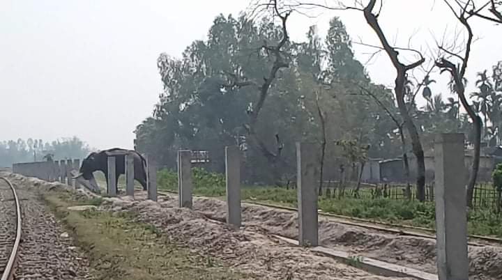 কিছুক্ষণ তান্ডব চালানোর পর হাতীটি লোকালয় ছেড়ে রেলওয়ের বিলে নেমে পড়ে।