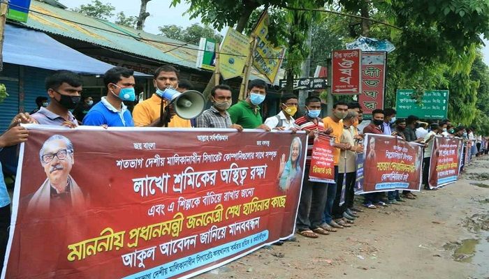 জানা গেছে, শতভাগ দেশীয় মালিকানাধীন সিগারেট-বিড়ি কোম্পানিগুলোর সাথে সম্পৃক্ত লাখো শ্রমিকের অস্তিত্ব রক্ষা এবং এ শিল্পকে বাঁচিয়ে রাখার জন্য মাননীয় প্রধানমন্ত্রী জননেত্রী শেখ হাসিনার কাছে আকুল আবেদন জানিয়ে মানববন্ধনের আয়োজন করে শতভাগ দেশীয় মালিকানাধীন সিগারেট-বিড়ি কারখানায় কর্মরত শ্রমিক ও কর্মচারীবৃন্দ নামক একটি সংগঠন। আজ বৃহস্পতিবার ১৮ জুন সকালে লালমনিরহাট জেলা শহরের প্রাণকেন্দ্র মিশন মোড় চত্ত্বরে করোনায় জনসমাগম করে সবাই এসে দাঁড় হয়। একে একে শ্রমিক ও কর্মচারীদের দাঁড় করিয়ে দেন শতভাগ দেশীয় মালিকানাধীন সিগারেট-বিড়ি কারখানায় কর্মরত শ্রমিক ও কর্মচারীবৃন্দের সভাপতি নজরুল ইসলাম, সহসভাপতি সবুজ আলী, সাধারণ সম্পাদক মিজান, সহসাধারণ সম্পাদক আমিনুর রহমান। পরে জনসমাগম করে মানববন্ধন কর্মসূচি শুরু হলে সেখানে শ্রমিক ও কর্মচারীবৃন্দ অস্বস্তি বোধ করেন।