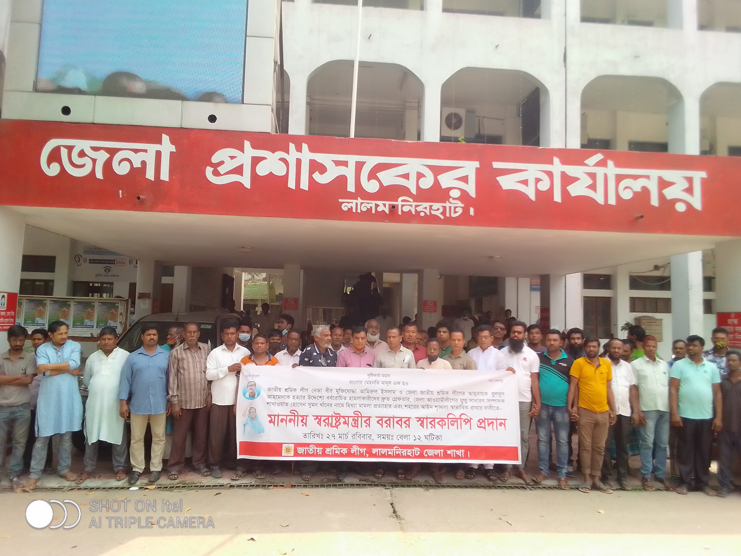 রবিবার (২৭ মার্চ) দুপুর ১২টায় লালমনিরহাট জেলা প্রশাসকের কার্যালয় চত্ত্বরে জাতীয় শ্রমিক লীগ লালমনিরহাট জেলা শাখার আয়োজনে মানববন্ধন ও প্রতিবাদ সভা এবং মাননীয় স্বরাষ্ট্রমন্ত্রীর বরাবর স্মারকলিপি প্রদান হয়েছে।