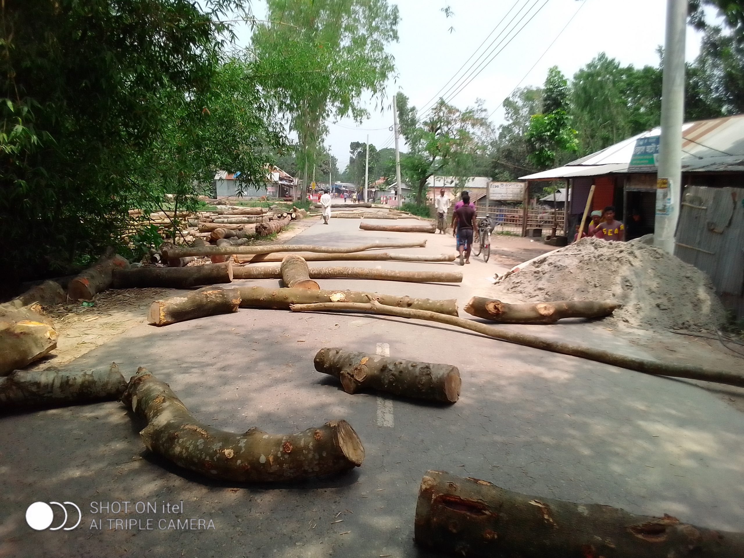 অবরোধ চলাকালীন সময় স'মিলের গাছের গুঁড়ি, টায়ার ইত্যাদি জাতীয় সড়কে ফেলে রেখে স্থানীয়রা প্রতিবাদ জানায়।