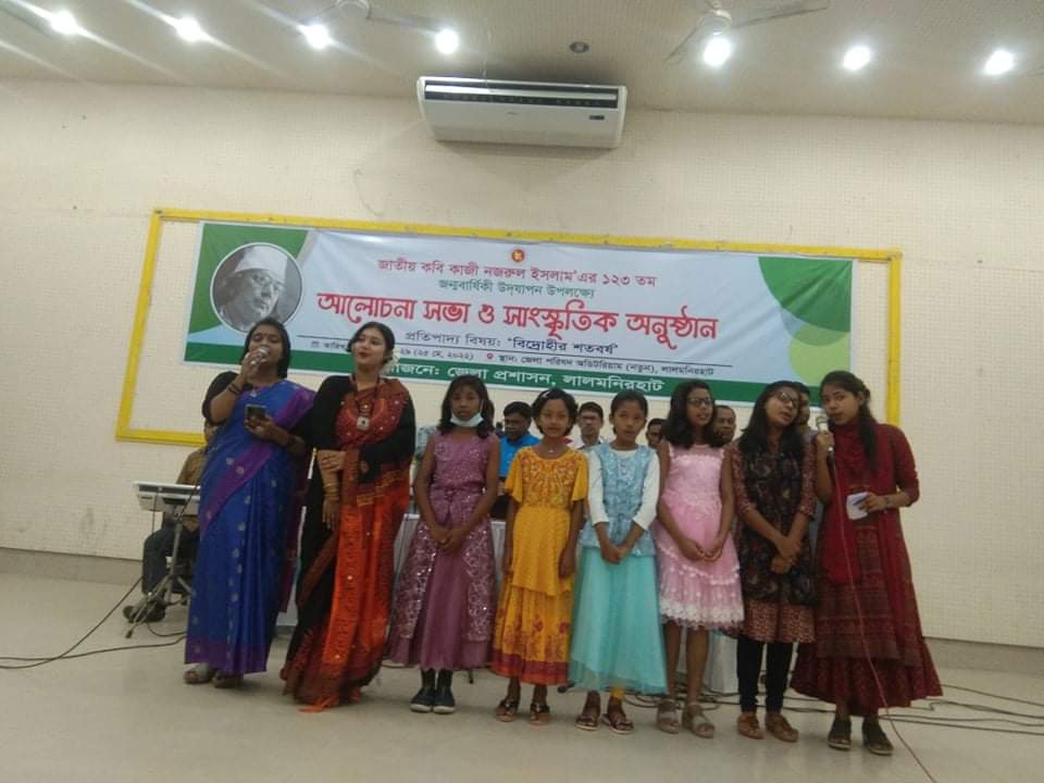 আলোর মনি রিপোর্ট: লালমনিরহাটে 'বিদ্রোহীর শতবর্ষ' প্রতিপাদ্য বিষয় নিয়ে জাতীয় কবি কাজী নজরুল ইসলাম-এঁর ১২৩তম জন্মবার্ষিকী উদযাপন উপলক্ষ্যে আলোচনা সভা ও সাংস্কৃতিক অনুষ্ঠান অনুষ্ঠিত হয়েছে।