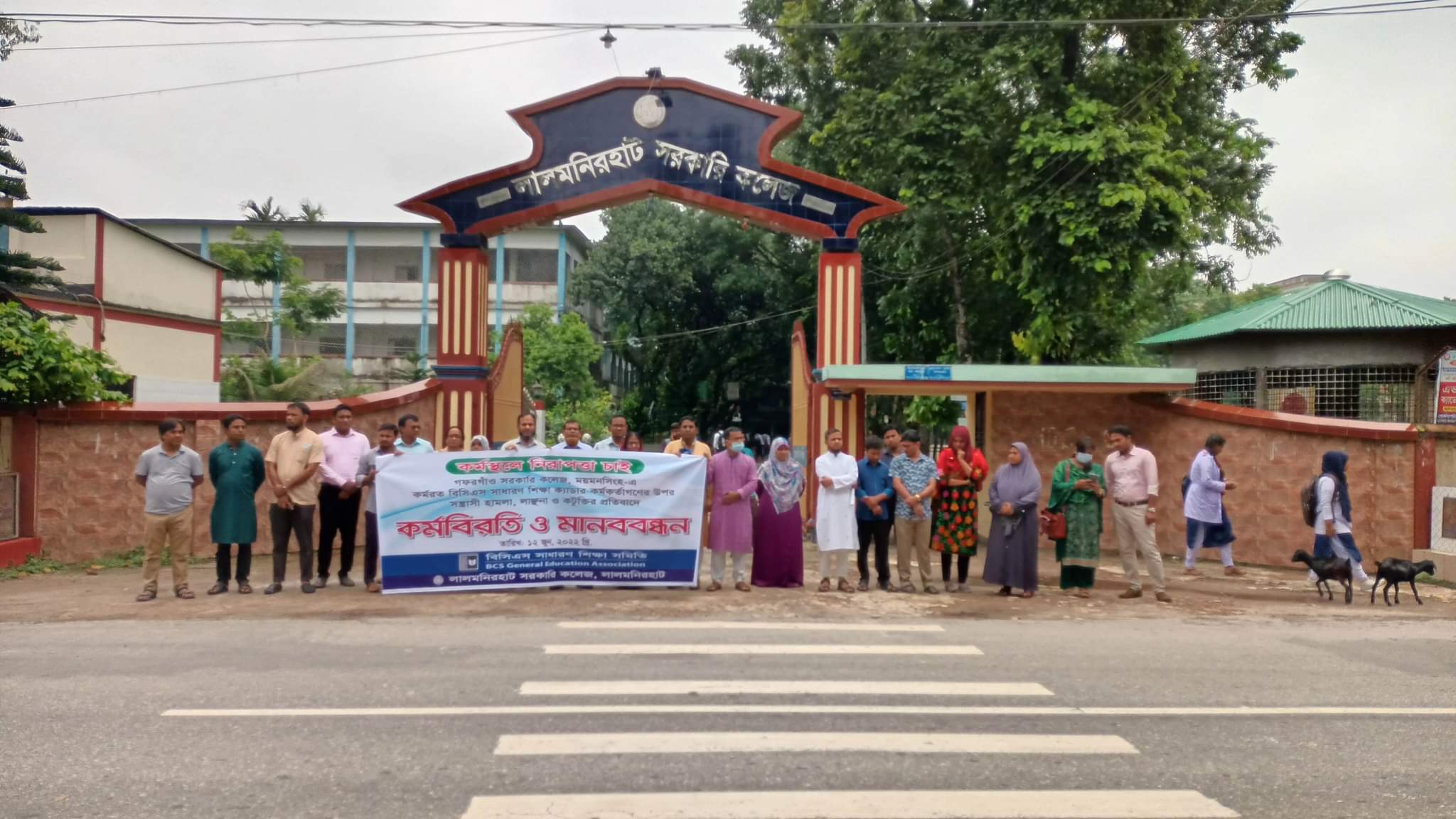 কর্মবিরতি ও মানববন্ধনে লালমনিরহাট সরকারি কলেজের অধ্যক্ষ প্রফেসর মোঃ ইউসুফ আলীর নেতৃত্ব কলেজের সকল শিক্ষকবৃন্দ অংশগ্রহণ করেন।