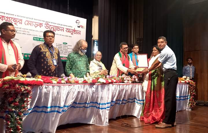 পরে বাংলাদেশের লালমনিরহাটের বিশিষ্ট কবি ফেরদৌসী বেগম বিউটিকে মহান মুক্তিযুদ্ধের তীর্থভূমি আগরতলা, ত্রিপুরা থেকে প্রকাশিত গণপ্রজাতন্ত্রী বাংলাদেশের মহান স্বাধীনতা অর্জনের সুবর্ণজয়ন্তীবর্ষ আন্তর্জাতিক স্মারকগ্রন্থের মোড়ক উন্মোচন অনুষ্ঠানমালায় আপনার উজ্জ্বল উপস্থিতি আমাদেরকে প্রাণিত করেছে, আমরা কৃতজ্ঞ শুভেচ্ছা স্মারক সম্মাননা প্রদান করা হয়।