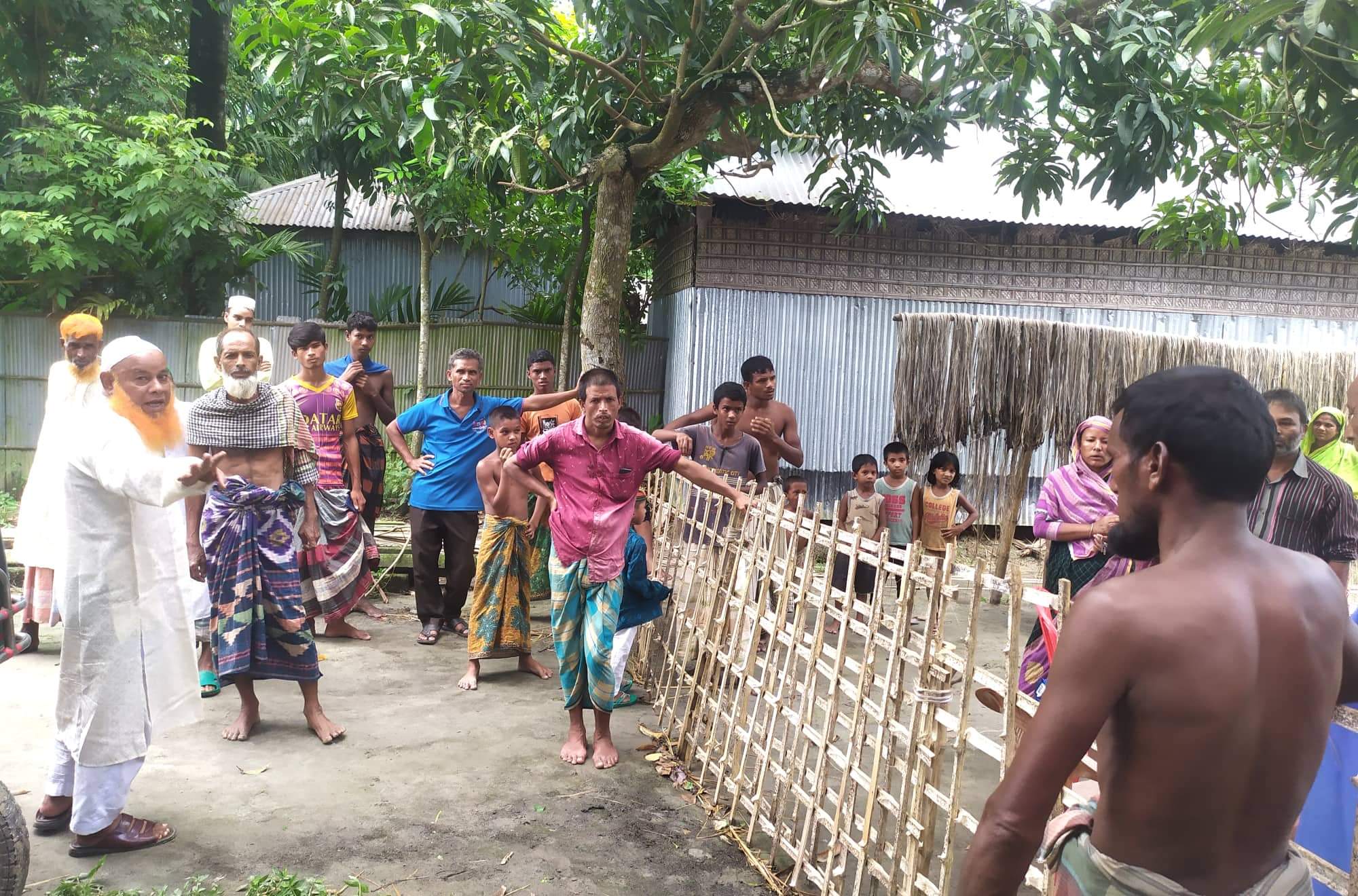 নাম প্রকাশ না করার শর্তে ওই গ্রামের একাধিক ব্যক্তি জানান, প্রায় ২০বছর ধরে এলাকার লোকজন এ রাস্তা দিয়ে চলাচল করে। হঠাৎ দেখি সামছুল হক রাস্তার মাঝে বেড়া দিয়ে চলাচলের বাঁধা দিচ্ছেন।