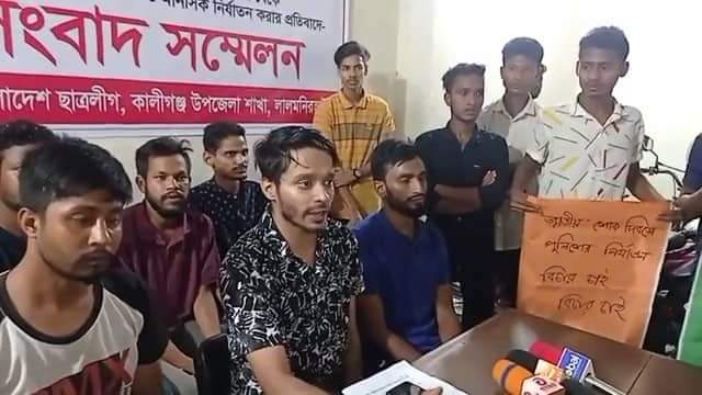 শনিবার (৩ সেপ্টেম্বর) রাত ৯টার দিকে লালমনিরহাট জেলার কালীগঞ্জ উপজেলায় এক সংবাদ সম্মেলন এমন বক্তব্য দেন লালমনিরহাট জেলা ছাত্রলীগের যুগ্ম সাধারণ সম্পাদক সাজিদ মাহবুব মেলভিন ও নির্যাতনের শিকার মিজানুর রহমান।