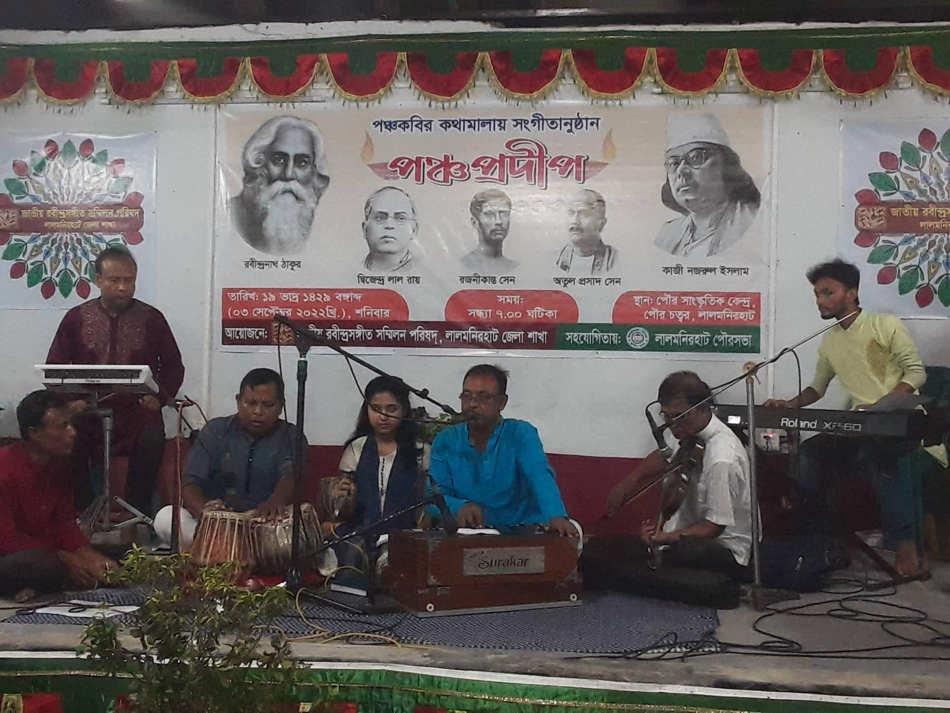 শনিবার (৩ সেপ্টেম্বর) সন্ধ্যা ৭টায় লালমনিরহাট পৌরসভা চত্ত্বর পৌর সাংস্কৃতিক কেন্দ্রে লালমনিরহাট পৌরসভার সহযোগিতায় পঞ্চকবির কথামালায় সংগীতানুষ্ঠান পঞ্চপ্রদীপ অনুষ্ঠান অনুষ্ঠিত হয়।