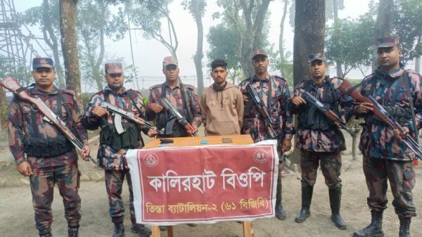 লালমনিরহাটের পাটগ্রামে অবৈধভাবে সীমান্ত পাড়াপাড়ের সময় রোববার (১৭ নভেম্বর) তিস্তা ব্যাটালিয়ন-২ (৬১ বিজিবি)’র কালিরহাট বিওপির দায়িত্বপূর্ণ এলাকার সীমান্ত মেইন পিলার ৮৫৫ হতে আনুমানিক ২০০গজ দূরে বাংলাদেশের অভ্যন্তরে সাপকার বাজার নামক আরও পড়ুন...