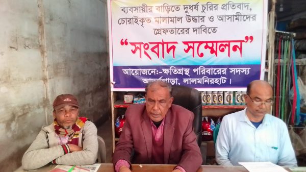 লালমনিরহাটে ব্যবসায়ীর বাড়িতে দুধর্ষ চুরির প্রতিবাদ, চোরাইকৃত মালামাল উদ্ধার ও আসামীদের গ্রেফতারের দাবিতে সংবাদ সম্মেলন অনুষ্ঠিত হয়েছে। শনিবার (১০ ফেব্রুয়ারি) বিকাল ৫টায় লালমনিরহাট জেলা শহরের বিডিআর রোডস্থ একটি ব্যবসা আরও পড়ুন...
