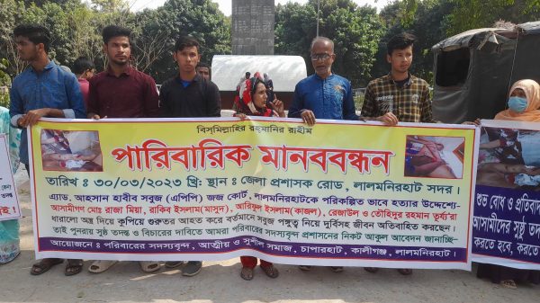 লালমনিরহাট জেলা জজ আদালতের এপিপি অ্যাডভোকেট আহসান হাবীব সবুজের উপর হামলা ও হামলাকারীদের বিচারের দাবিতে অনশন এবং পারিবারিক মানববন্ধন কর্মসূচি পালন করেন তার পরিবার। বৃহস্পতিবার (৩০ মার্চ) দুপুরে লালমনিরহাটের আরও পড়ুন...