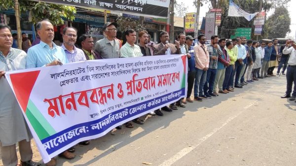 লালমনিরহাটে চ্যানেল টুয়েন্টিফোর প্রতিনিধি সাংবাদিক মাহফুজ বকুলের উপর হামলা, দৈনিক মানবকন্ঠ প্রতিনিধি আসাদুজ্জামান সাজুকে হত্যার হুমকি ও আনন্দ টিভির প্রতিনিধি আব্দুর রহিমের উপর হামলা-হুমকির প্রতিবাদে ও হুমকিদাতা-হামলাকারীদের গ্রেফতার এবং সারাদেশের আরও পড়ুন...