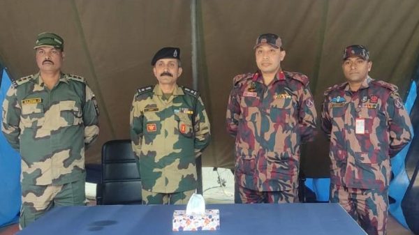 লালমনিরহাট সীমান্তে বিজিবি-বিএসএফ ব্যাটালিয়ন অধিনায়ক পর্যায়ে বৈঠক অনুষ্ঠিত হয়েছে। শনিবার (১৫ ফেব্রুয়ারি) ১৩৪০ ঘটিকা হতে ১৪৩৫ ঘটিকা পর্যন্ত লালমনিরহাট ব্যাটালিয়ন (১৫ বিজিবি) এর অধীনস্থ গোড়ক মন্ডল বিওপির সীমান্ত পিলার আরও পড়ুন...