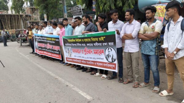 লালমনিরহাটে “সাংবাদিক নির্যাতন ও হত্যার বিচার চাই, সাংবাদিকদের নিরাপত্তা নিশ্চিত করো, কলমের স্বাধীনতা রক্ষা করো” স্লোগান নিয়ে দৈনিক প্রতিদিনের কাগজ’র গাজীপুর স্টাফ রিপোর্টার আসাদুজ্জামান তুহিনকে হত্যাসহ সারাদেশে সাংবাদিক নির্যাতনের প্রতিবাদে আরও পড়ুন...